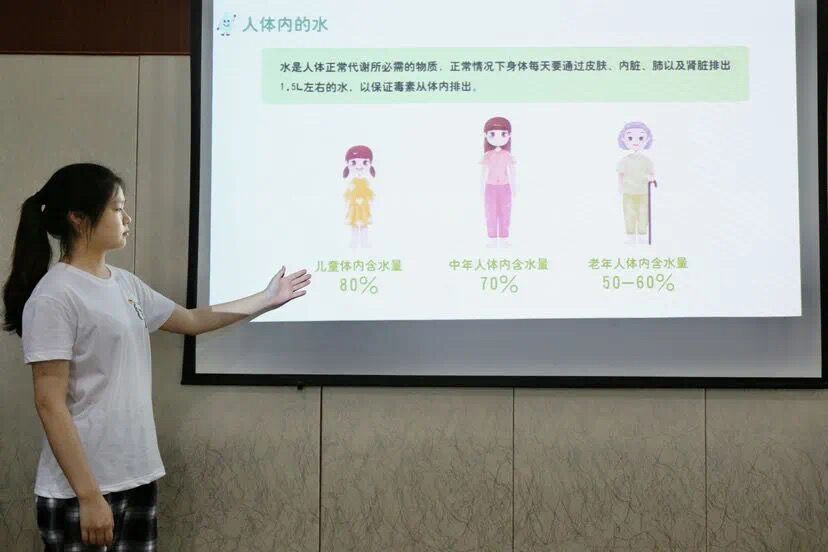 “经过这个过滤装置污水真的能变干净吗?”孩子们目不转睛地盯着面前小装置,神情专注。片刻后,教室里陆续响起惊喜的呼声与热烈讨论。团队成员正在为孩子们讲解基本的净水原理,利用简易材料包制作净水器并观察过滤效果,进一步了解污水再利用的过程,引导青少年树立“环保再生,废物利用”的生态文明理念。