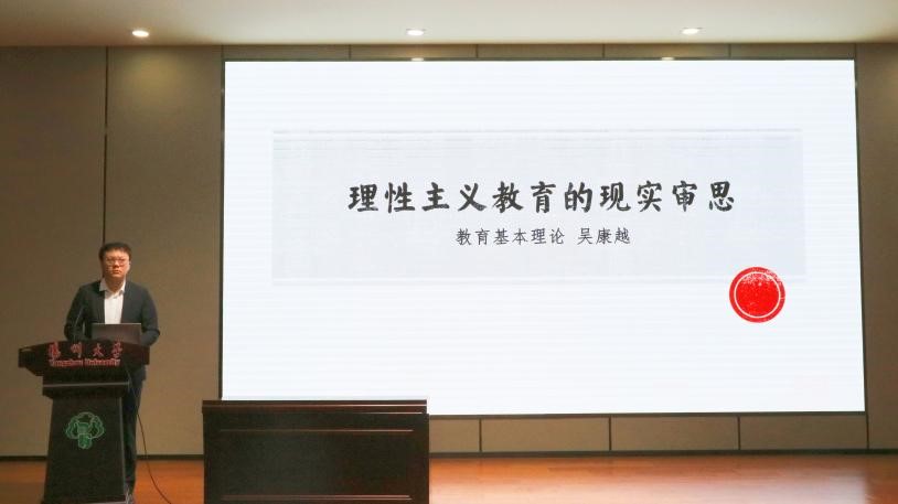 何为理性?吴康越同学从古希腊哲学中的自然理性、中世纪基督教神学中的神学理性、近代哲学中的人类理性三个层面进行了详细阐述。通过对价值理性、工具理性、认知理性进行剖析,吴康越同学谈论了理性主义偏失的现实表现,基于此,他认为可能导致的理性主义偏失的后果有两点:一是工具理性下教育价值的消弭;二是认知理性下教育重心的变更。最后吴康越同学从价值理性对工具理性的纠偏、实践理性对认知理性的纠偏两个方面探析了理性主义教育“超越”的可能路径。