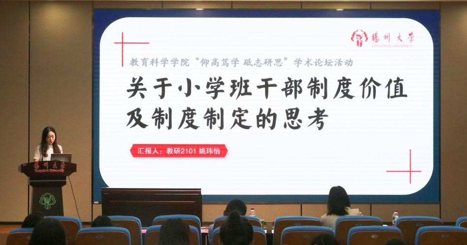 学术交流是提升研究生培养质量的重要方式。为督促研究生的理论与实践研究,最大限度地提高研究生的思维能力,扬州大学教育科学学院(师范学院)(学前教育学院)于2023年5月27日上午9:00在瘦西湖校区8号楼S405举办“仰高笃学,砥志研思”学术论坛活动。出席本次活动的嘉宾有:教育科学学院的甘宜涛老师、颜晓程老师。此外,教育科学学院的研一、研二学子积极参与了本次学术论坛。