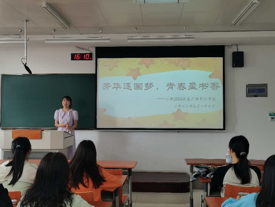 最后,活动组织者,小教2203班班长孙颖同学对本次读书分享会进行了总结,她表扬了对各组同学的认真准备,同时也指出了存在的问题,孙颖同学表示:“本次读书分享会,同学们巧妙地结合书中内容并联系社会现实,反思当下并对未来作出展望,展现了师范生的风采!” 希望同学们今后能一直与书相伴,在阅读中汲取精神力量!