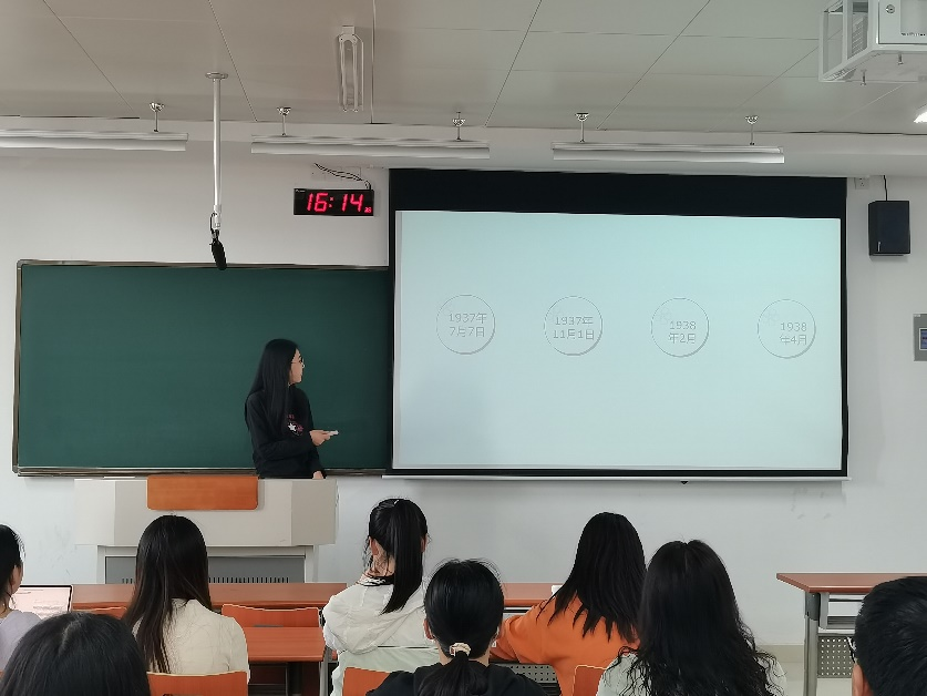 第三组徐婷钰同学结合电影《无问西东》,向我们介绍了联大当时的艰苦环境。哪怕是学富五车的大师们也要忍受由恶劣的条件所带来的病痛和不适。由此衬托出联大师生取得成绩的不易,体现了他们顽强坚毅的意志品质。