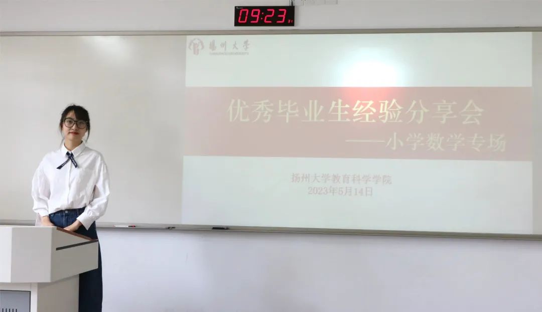 为了让定向师范专业的同学们能够对当下的大学生活有更充分的规划,更好地了解未来的教学实习并积极投身教育实践,扬州大学教育科学学院(师范学院)(学前教育学院)于5月14日上午举办优秀毕业生经验交流会,并邀请2021届优秀毕业生代表杜雨洁学姐回到母校与学弟学妹们进行交流分享。