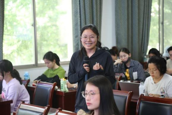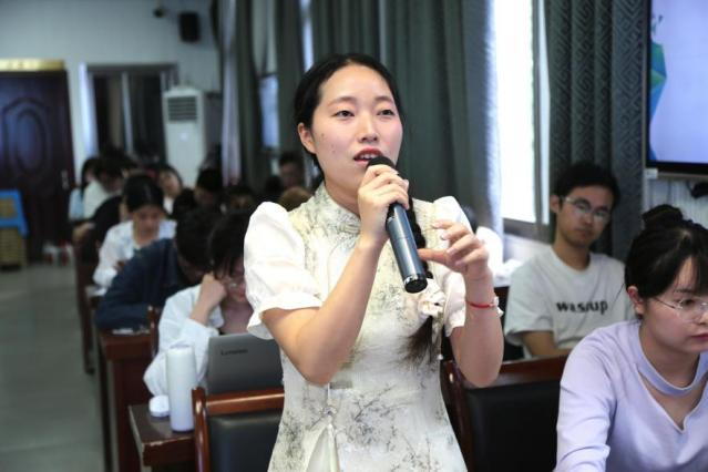 在提问互动环节,荣禛慧子同学询问了高睿同学在比赛中遇到的最大困难和挑战,高睿同学表示团队曾因成员毕业导致时间协调困难,通过重新规划任务、灵活调整分工和线上会议沟通,最终保障了项目顺利推进。针对王园丹同学关于红色文化与优秀传统文化关联的疑问,高睿同学从语文课标角度解读,指出二者是并列关系,共同构成中国特色社会主义文化的重要组成部分,鼓励同学们探索红色文化的创新表达方式。