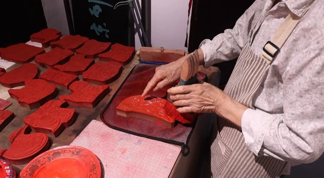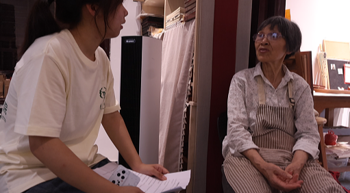 探访过程中,学子们不仅用镜头记录了雕版印刷的每一个珍贵细节,更与奶奶展开了深度对话。田梦瑶提及,在工作室最醒目的位置,一幅《哪吒闹海》雕版画吸引了她的注意:“除了传统的十二生肖题材,我还看见了时下热门的哪吒,想必很受孩子们的欢迎吧?”奶奶笑着揭秘创新之道,“用老手艺刻新故事,融入孩子们喜欢的元素,才能让非遗走出去”。让神话IP与非遗创作碰撞火花,这不仅是增加销量的妙招,更是激活非遗生命力的破局之策。