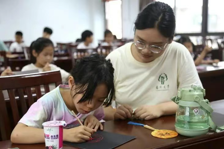 当孩子的指尖触碰到流动的漆液,当古老纹样在刮画纸上重生时,团队成员真切感受到非遗不再是尘封的古董,而是需要被重新激活的文化基因;传承不是单向的守护,而是让年轻一代在欣赏中感受匠心温度,在创造中续写文明密码。这些亲手创作的漆扇与刮画,不仅是孩子们艺术启蒙的见证,更成为连接古今的文化纽带。