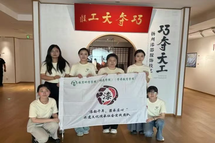 为深入传承中华优秀传统文化,让非遗技艺走进大众生活,非遗传承实践团队于7月1日前往扬州非遗珍宝馆开展前期调研。在讲解员的引导下,团队成员系统地学习了漆器工艺的历史渊源、制作流程及文化内涵。大家纷纷被漆器精妙绝伦的工艺与深厚的文化底蕴所折服,这也更加坚定了成员将漆器文化带入社区的决心。