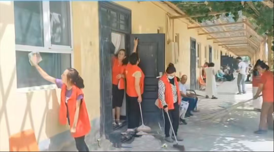 活动当天,志愿者们分工明确,热火朝天地忙碌起来。一部分人拿着扫帚、抹布,对养老院的庭院、宿舍、公共活动区域进行细致清扫。庭院里堆积的落叶、角落的杂物被一一清除,宿舍中老旧的门窗、桌椅经过擦拭,重新焕发光彩,原本略显陈旧的空间多了几分温馨。另一部分志愿者则围坐在老人身边,陪他们唠家常。老人们打开话匣子,讲述着村里过去的故事,那些关于农田耕耘、邻里互助的回忆,在交流中传递,让志愿者们也深深感受到乡土岁月的厚重。还有志愿者贴心地为老人修剪指甲、理发,用这些细致入微的服务,把关怀送到老人心里。