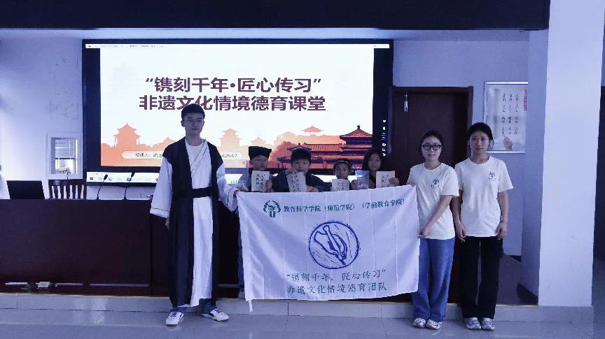 近日,我院“镌刻千年·匠心传习”实践团队在许庄社区文化活动中心开展非遗情境德育课堂,通过雕版印刷技艺展示、沉浸式体验与创新转化三大模块,让百年非遗在青少年心中生根发芽。