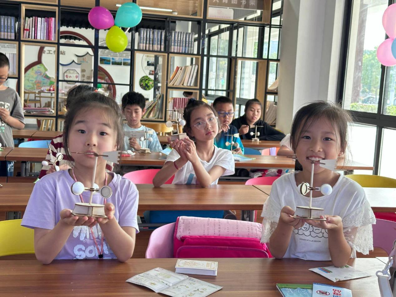 为丰富青少年兴趣爱好,提高动手能力,志愿者们为大家安排了一些有趣的动手小实验。第一组的手工实验是制作风向标。在讲解完风向标的基本原理并在大屏幕上播放了制作过程后,志愿者便带领同学们开始动手操作,范竞遥同学手把手教孩子们如何正确利用手工材料。“我的风向标能转啦!”“看!它指向东风!”教室里充满了欢呼声。从“探秘气象”到“巧手制作”,孩子们在实践中理解了科学原理,不仅学到了防灾知识,更点燃了对自然科学的好奇心。