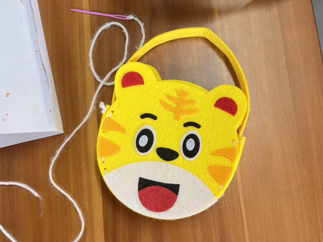 考虑到一些小朋友已经是高年级学生,志愿者们便为最后一组小朋友准备了稍有难度的缝制手工。活动中,志愿者范竞遥化身“手工老师”,从裁剪布料到缝合边角,细致讲解每一步要领,孩子们眼神专注,手指虽略显笨拙,却格外认真。当看到自己亲手缝制的小包初具雏形时,兴奋地欢呼起来,纷纷举着作品和志愿者合影。孩子们不仅学会了基础缝纫技巧,更收获了独一无二的手工成果与温暖回忆。