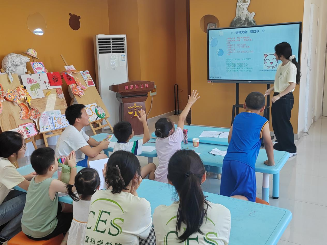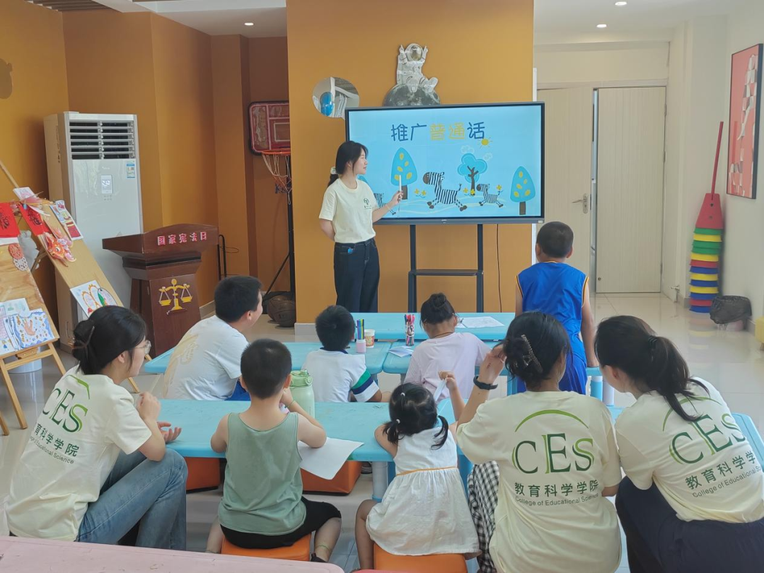 近日,我院“同语同行,运河共情”暑期社会实践团队在扬州市友谊村村民居委会社区开展了“推广普通话”主题的社区授课,带领社区孩子们感受普通话的发展历史以及重要性,体验普通话带来的便利和乐趣。