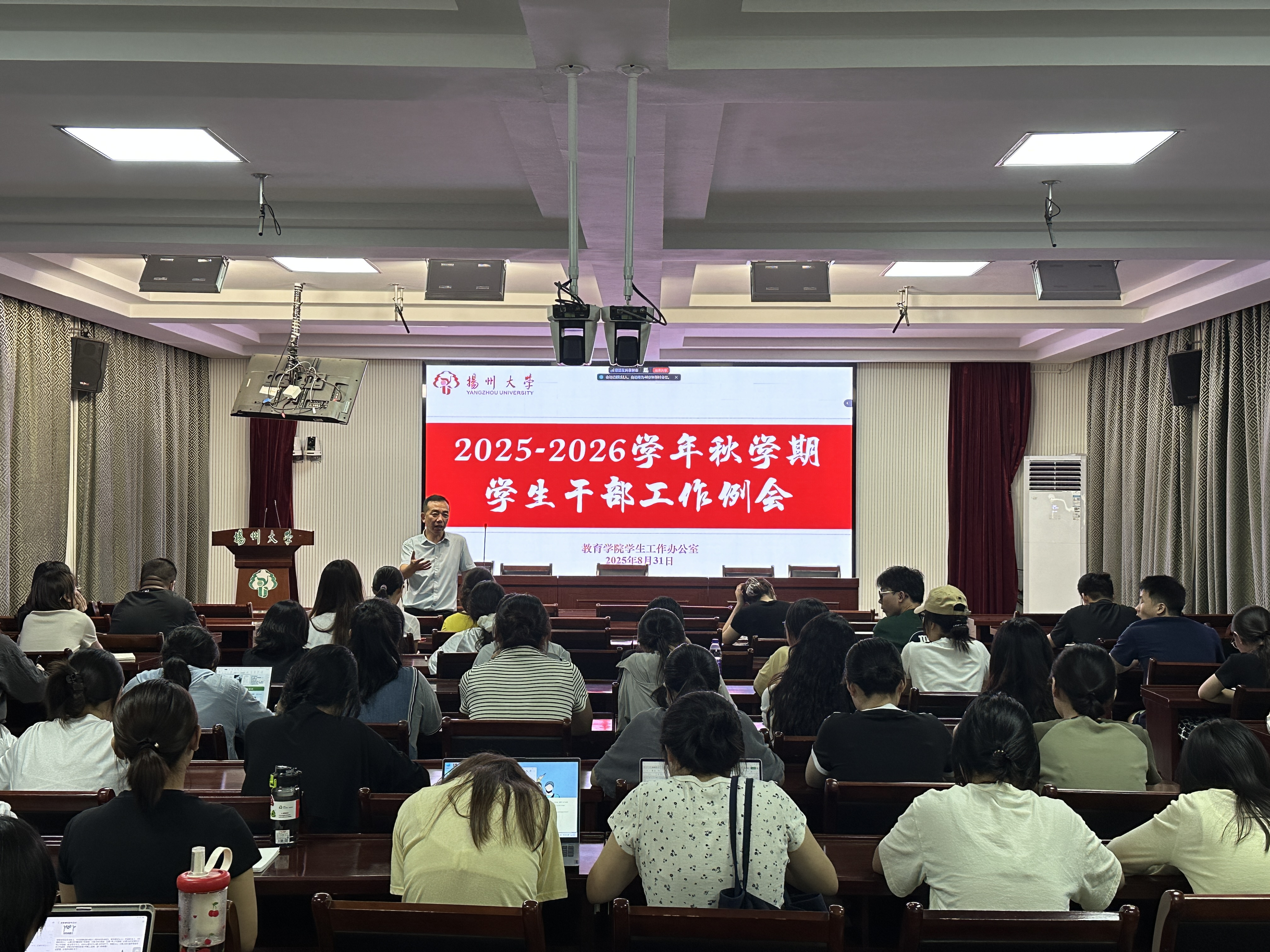 8月31日,学院召开2025-2026学年秋学期学生干部工作例会。院党委副书记朱鑫铨出席会议。全体辅导员,各班班长。团支书,各学生组织骨干参加会议。
