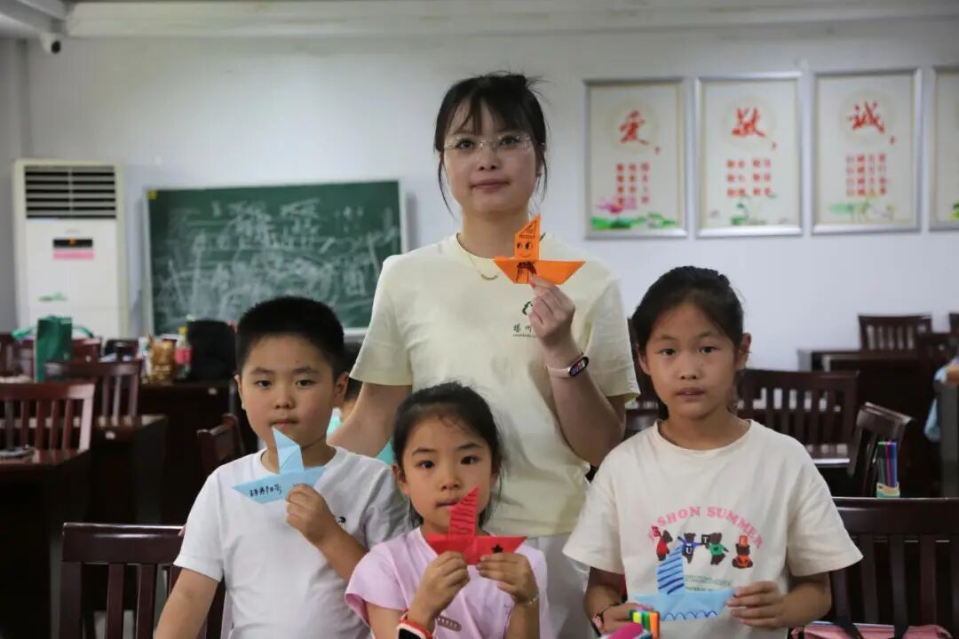 实践团成员孙思璇带领孩子们开展“折纸话节水”活动。一张张彩纸在小朋友们手中变成了晶莹的水滴、摇曳的小船和活泼的海洋生物。她一边指导折纸技巧,一边分享节水小窍门,鼓励孩子们把亲手折的作品带回家,提醒家人共同参与节水行动。活动在孩子们展示作品的欢声笑语中落下帷幕,节水护水的种子已悄然播撒。
