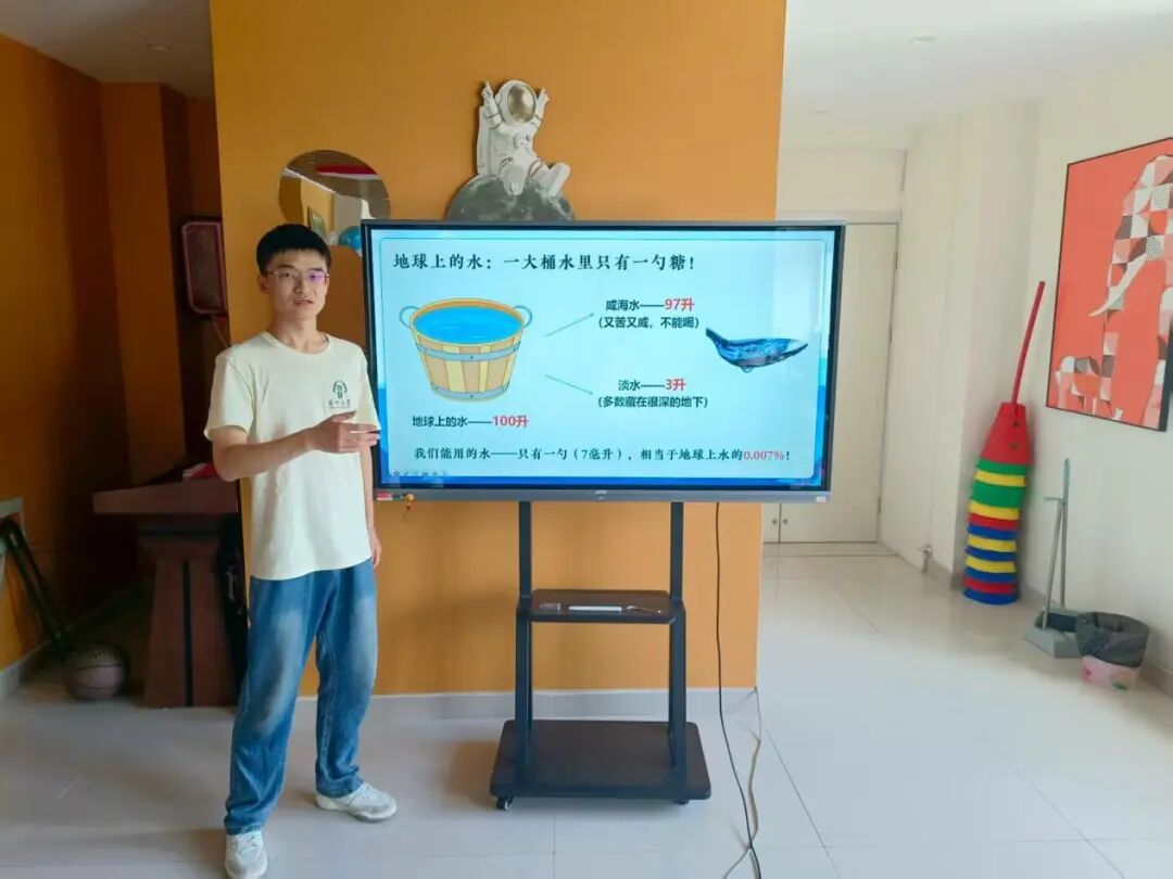 “小朋友们,你们知道身体里藏着多少水吗?”宣讲伊始,实践团成员高睿以提问切入,拉开“水的重要性”科普环节序幕。通过PPT中生动的图片与通俗的比喻,孩子们了解到水是人体的“重要成员”,更是动植物生存的“生命线”、自然界水循环的“核心动力”。她结合生活场景,讲述水在饮用、洗漱、灌溉等方面的用途,让孩子们直观感受“水是生命之源”的深刻内涵。