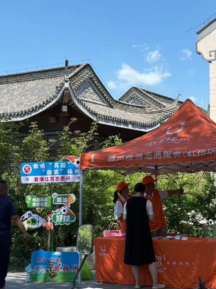 近期,“苏超” 赛事火爆出圈,持续攀升的热度为扬州带来了大批游客。为给远道而来的客人提供贴心便捷的服务,“微笑扬州” 志愿服务总队在瘦西湖、个园、何园、大明寺等全市 21 个国有收费景区设置了固定服务点。我院小教 2201 班王雯轩作为其中一员,在虹桥扬州旅游信息咨询中心开展志愿服务,身着橙色马甲、头戴橙色帽子,与其他 “小橙子” 一同为游客们保驾护航。