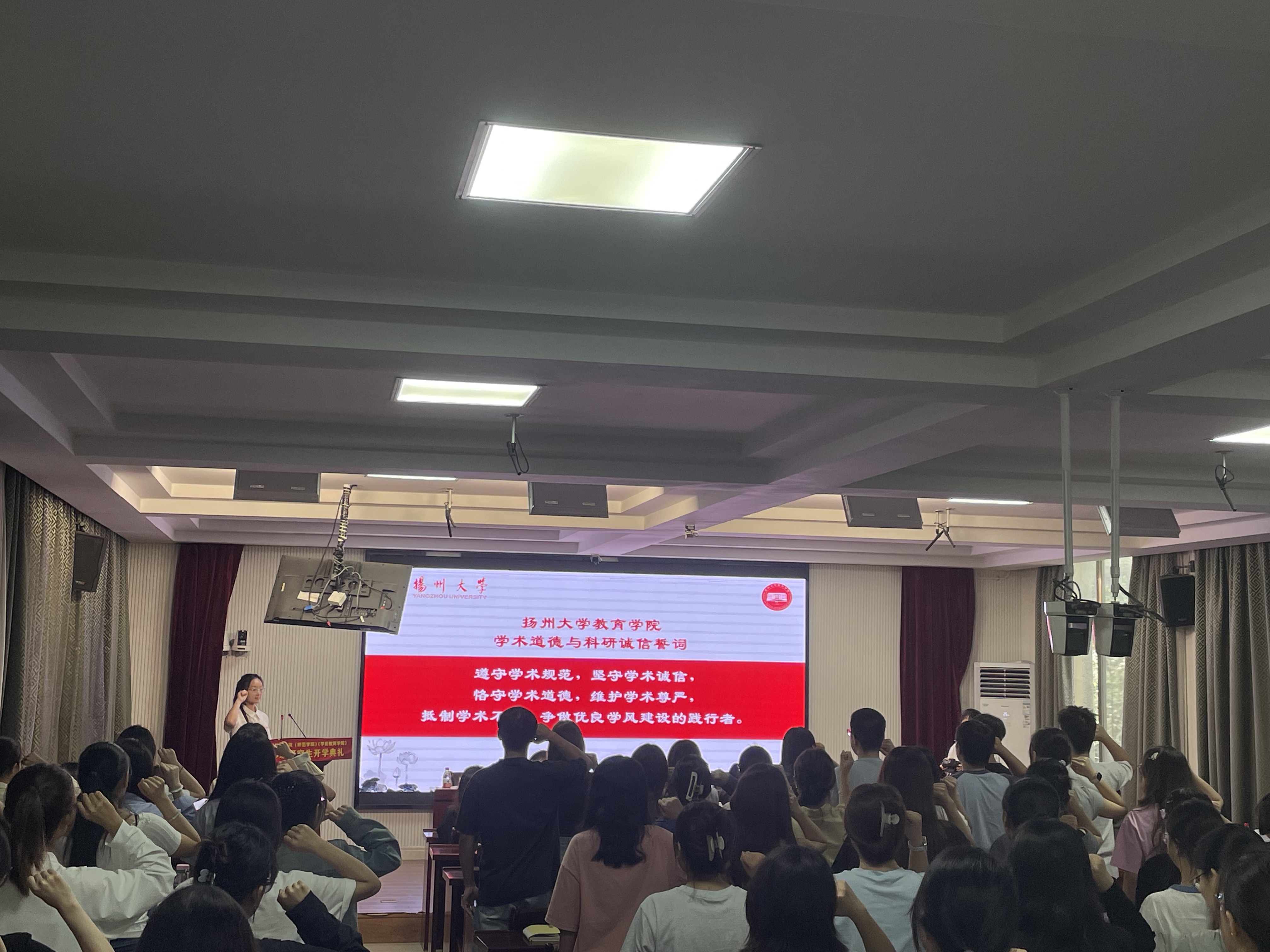 同时,学院组织全体研究生签订《扬州大学研究生学术科研诚信承诺书》,并进行学术道德与科研诚信宣誓,端正了科研态度,明确了科研初心,营造良好的科研氛围。
