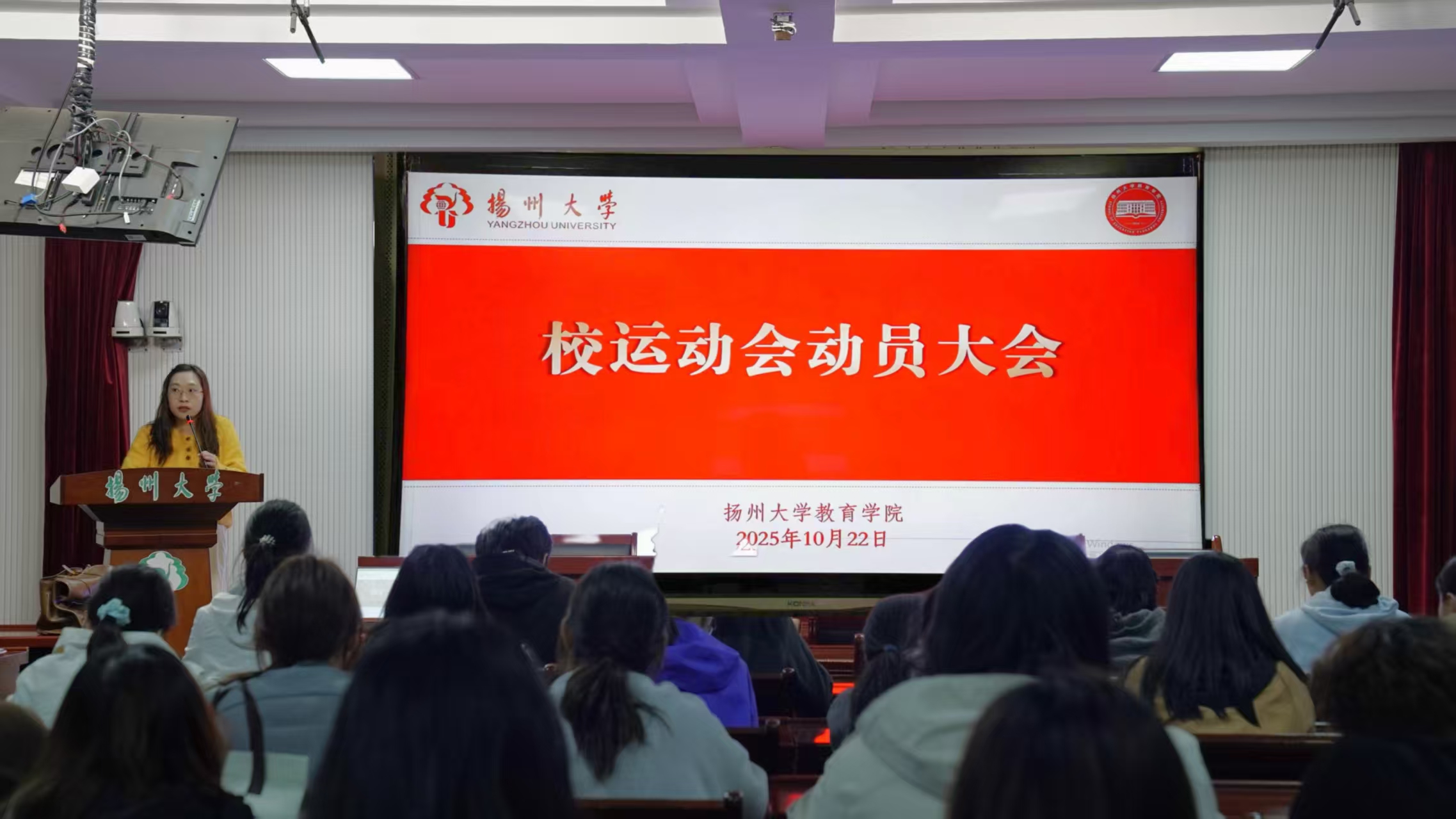 在校第30届田径运动会到来之际,为动员教院学子们在赛场上奋勇争先,彰显师生们的的精神风貌,10月22日,扬州大学教育学院(师范学院)(学前教育学院)于65号楼西附二楼报告厅举行校运会动员大会。我院党委副书记朱鑫铨老师、辅导员张杨老师,全体运动员及志愿者出席本次大会。