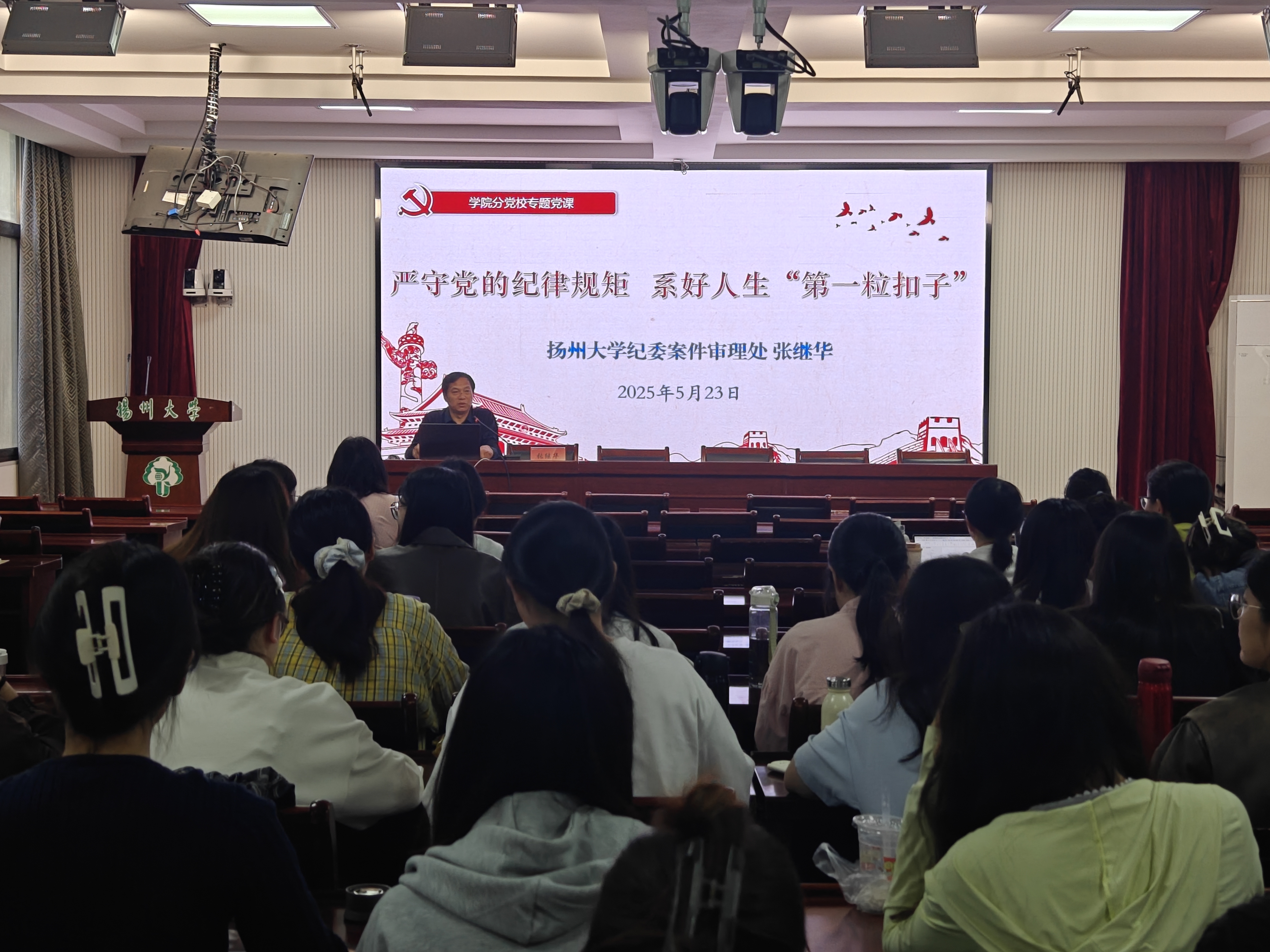 校纪委案件审理处处长张继华为全体毕业生党员作“严守党的纪律规矩 系好人生‘第一粒扣子’”的专题党课。张继华从《中国共产党章程》谈起,结合党纪党规中的行为规范,通过理论武装和典型案例分析,嘱托毕业生党员从一开始就要扣好人生的扣子。