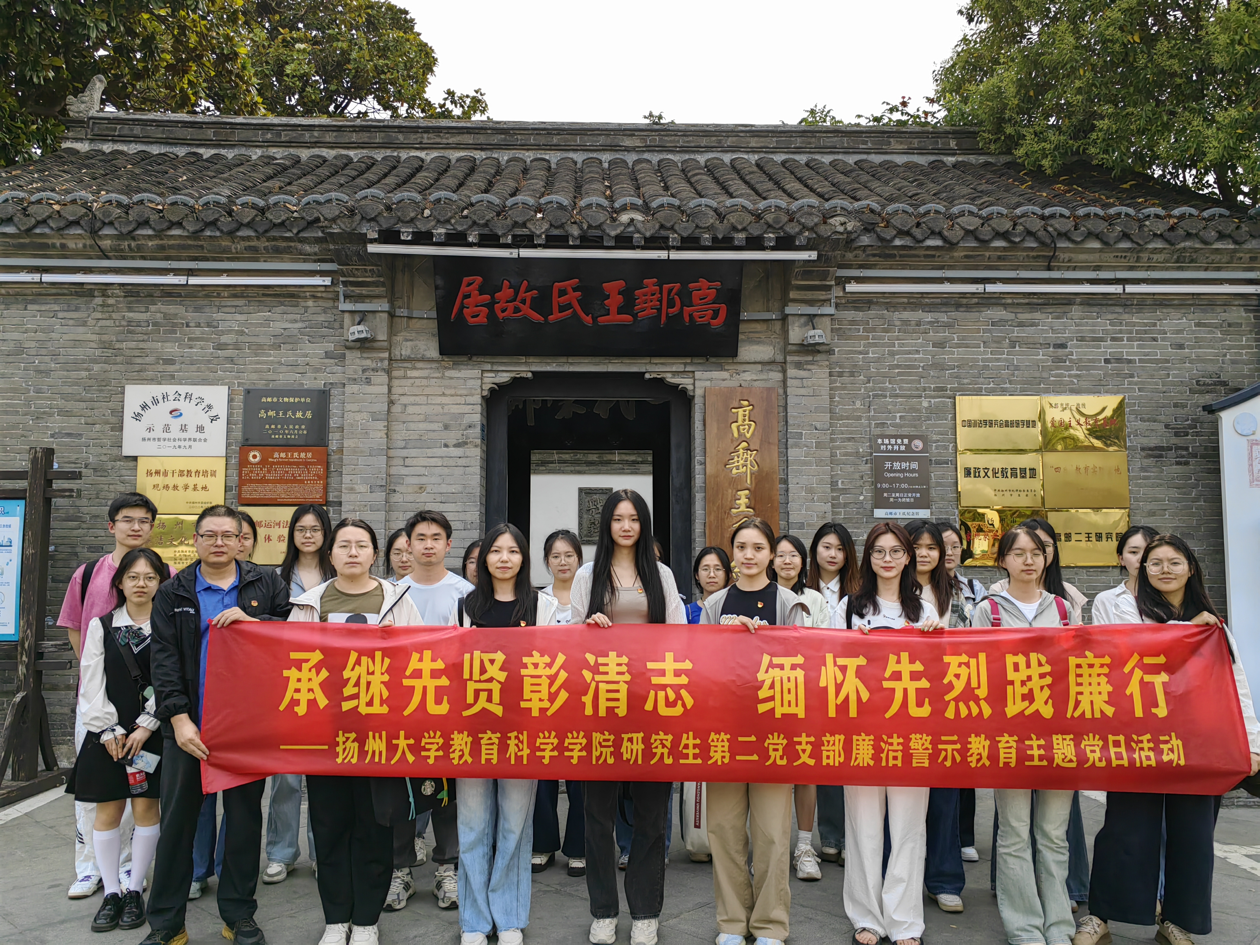 5月25日,我院研究生第二党支部前往高邮开展“承继先贤彰清志 缅怀先烈践廉行”廉洁文化现场教学活动。