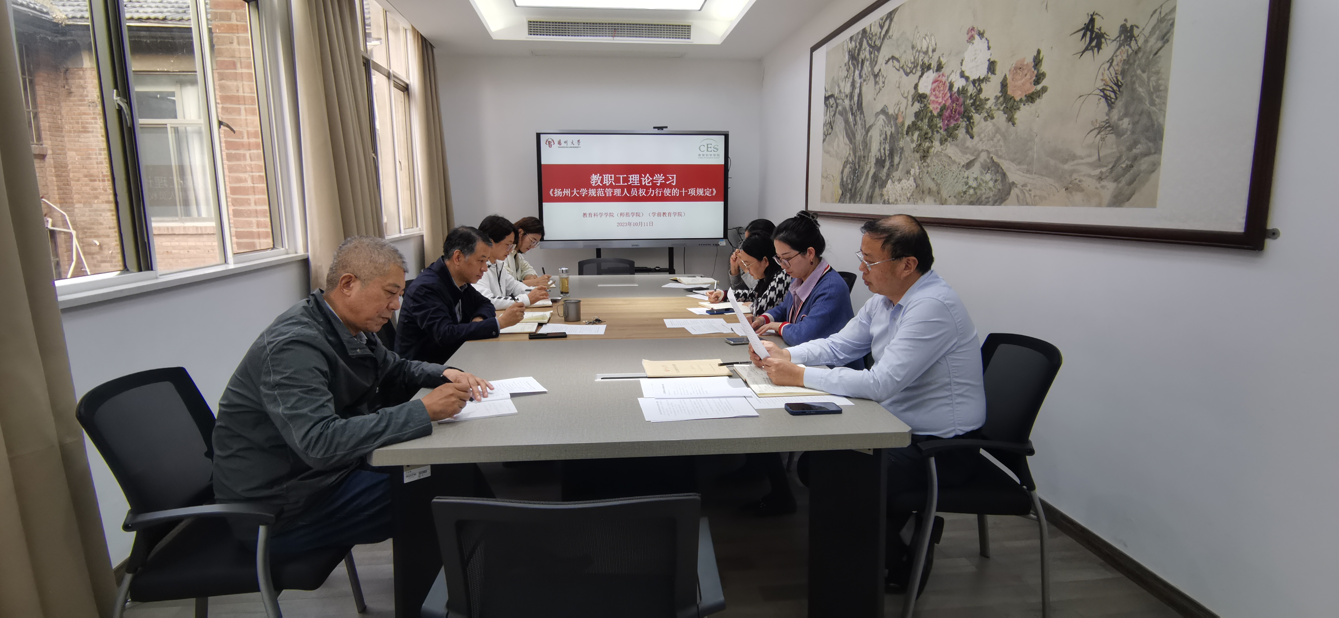 院党委书记杨咏领学《扬州大学规范管理人员权力行使的十项规定》《中共扬州大学委员会关于加强新时代廉洁文化建设的实施意见》,强调廉政建设和作风建设永远在路上,全体教职工要坚守理想信念、严守廉洁自律底线,切实筑牢信仰之基、补足精神之钙、把稳思想之舵,以扎扎实实、勤政务实的工作作风为学院发展贡献力量。