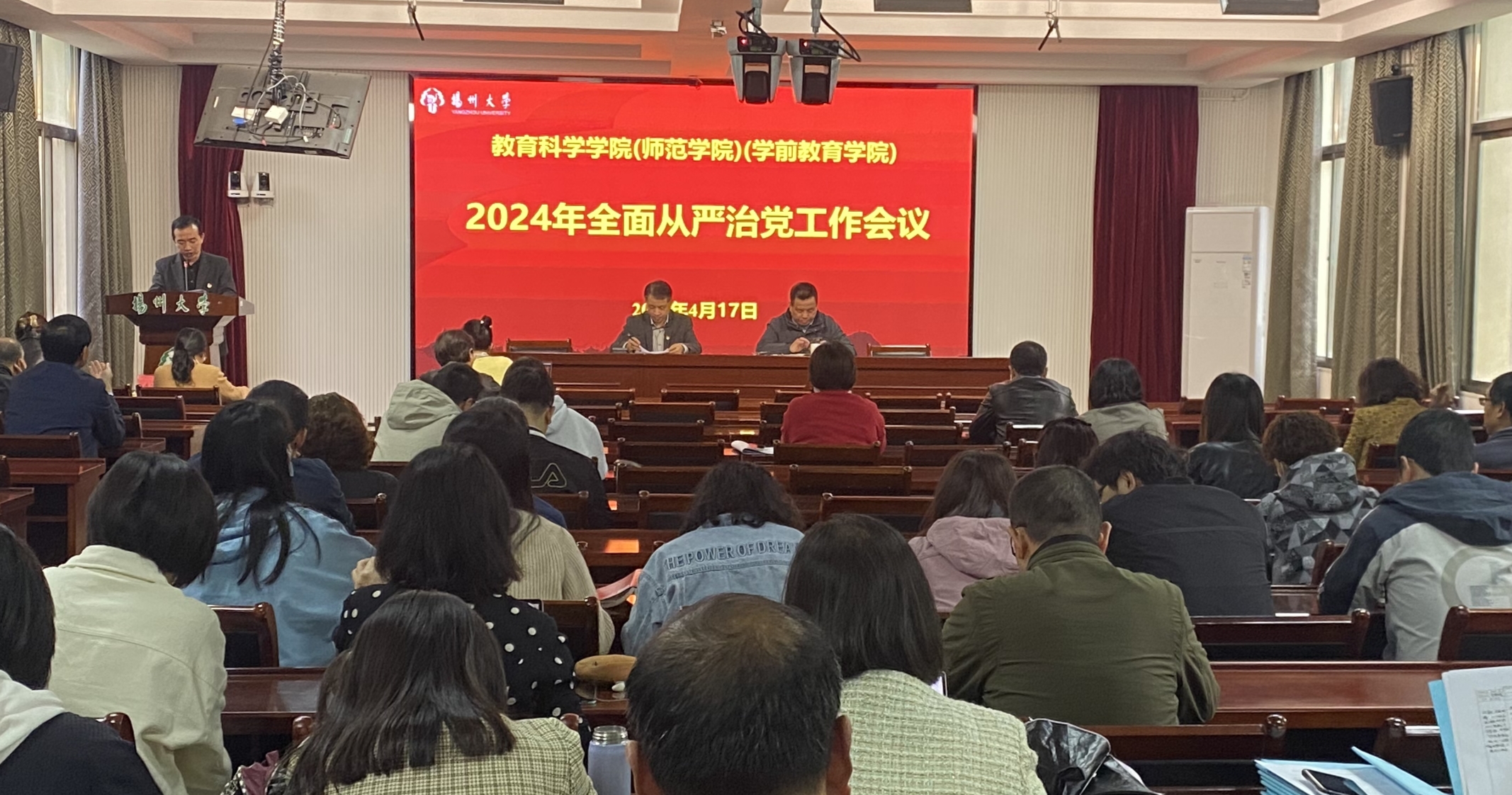 4月17日下午,我院在西附二楼报告厅召开2024年全面从严治党工作会议暨校园安全综合治理工作会议。院党委书记杨咏主持并讲话。