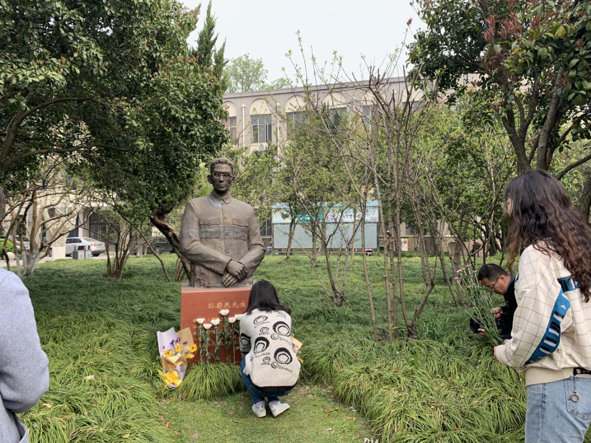 随后,师生向孙蔚民先生的塑像敬献鲜花。