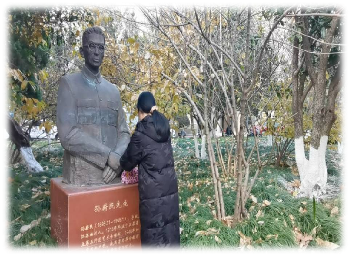 学院“孙蔚民班”向孙蔚民先生塑像敬献鲜花