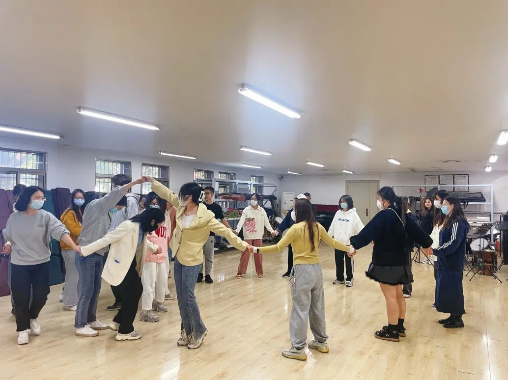 第二天的重磅环节是心有千千结。在场的50位成员手拉手围站成一个圆圈,记住自己左右手各相握的人,背景音乐中,大家放开手,随意走动,音乐一停,脚步即停,找到原来左右手相握的人分别握住。所有人手都彼此相握,形成了一个错综复杂的“手链”。李传伟老师要求大家在手不松开的情况下用各种方法,如跨、钻、套、转等(但手不能放开),将交错的“手链”解成一个大圆圈。