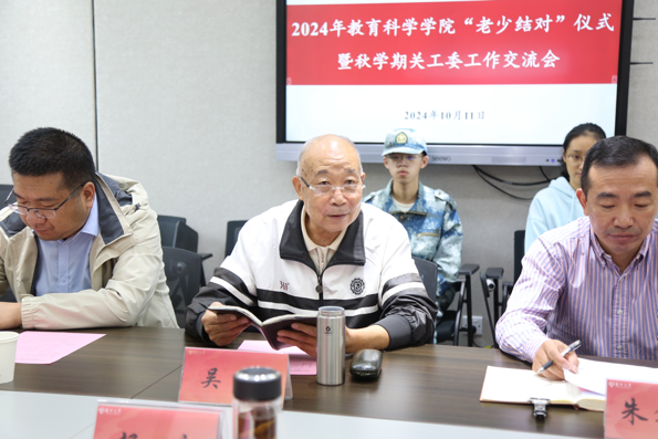 为精准服务青年师生,提高关爱工作实效,院关工委设立“老少结对”帮扶制度,现场为吴尧、周春开、薛晓阳、蔡澄、李传伟等老师颁发导师聘书,并与学生代表结对。