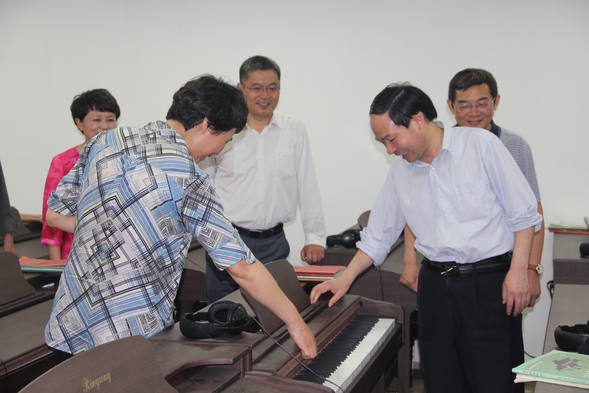 焦新安校长在学院党政领导班子的陪同下,首先实地察看了心理实验室、学前教育专业实验用房、普通话测试站等教研设施,同时深入教师办公室和学生会等场所,详细了解教师的办公条件和工作情况,并与有关师生亲切交谈。