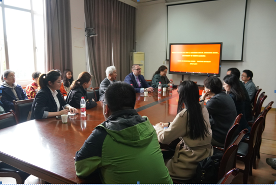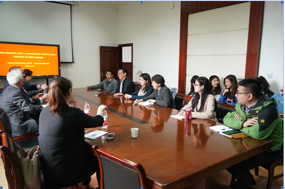 张春生副校长介绍了北阿拉巴马大学总体的校园概况,Dr. Ross C. Alexander详细介绍了北阿心理学学科在美国高等教育中的学科地位和开设的相关课程。教育学121班的同学就北阿的课程设置、食宿安排、课堂氛围、教师等相关的问题积极提问,美方校长做出了详细的回答。在讨论过程中,我院领导计划将对赴美学习同学进行行前教育,增强同学们对美国文化的了解和自我保护意识。期间,查永军副院长还介绍了我院将赴北阿访学的几位教师。双方就教师发展等一问题进行了进一步交流。