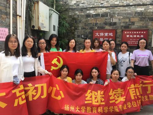 为隆重纪念党的98岁华诞,回顾党的光辉历史,讴歌党的丰功伟绩,继承和发扬党的优良作风和传统,2019年6月5日,扬州大学教育科学学院研究生第二党支部特举办“不忘初心,继续前行”——迎接建党98周年主题党日活动,组织党员同志们参观扬州市历史上第一个中国共产党组织的领导人曹起溍同志的故居。