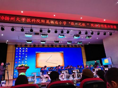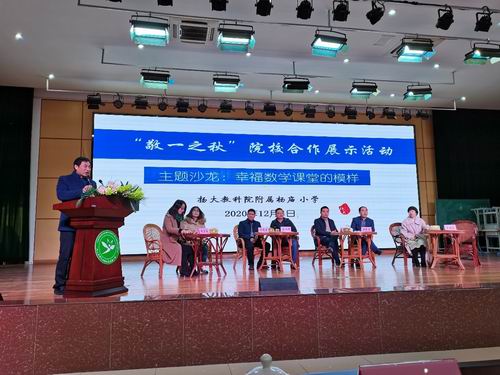 2020年12月4日,扬大教科院附属杨庙小学研究生工作站在附属杨庙小学隆重举办“敬一之秋”院校合作展示活动。此次活动以“幸福教育理念下的数学课堂的内涵与建构”为主题,由杨庙小学校长王兴伟主持。扬州大学研究生院相关领导、扬州大学教育科学学院党政领导班子成员、邗江区教育局相关领导出席此活动。扬大教科院院长查永军和邗江区教育局副局长冯长宏分别进行了热情洋溢的讲话。