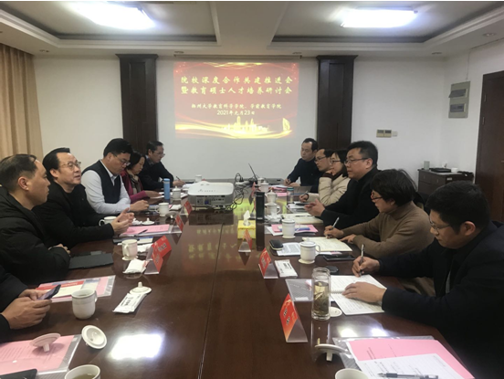 2021年1月23日下午,扬大教科院与邗江区院校深度合作共建工作推进会暨教育硕士人才培养研讨会在扬大瘦西湖校区虹桥专家楼举行。扬大社会合作与服务处尤玉军处长、扬大教育科学院查永军院长、邗江教育局何云峰局长、邗江教育局冯长宏副局长等相关领导及相关合作办学的学校代表、科研副校长代表等出席了会议。会议由扬大教育科学院副院长曹玉兰主持。