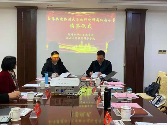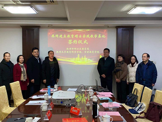 会上,首先由扬大教育科学院查永军院长和邗江区教育局冯长宏副局长代表院校双方续签了合作共建附属杨庙小学的协议,接着双方签约了教育硕士培养实践教学基地协议。