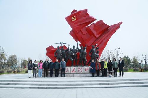 2021年是中国共产党成立100周年,为贯彻落实党中央和学校开展党史学习教育的精神要求,进一步巩固和深化党员理想信念教育和担当奋斗精神,激励党员不忘初心、牢记使命,更好担负起立德树人根本任务,以更饱满的激情投身我校高水平研究型大学建设征程,2021年3月21日,教育科学学院教工行政党支部组织支部党员和入党积极分子一行20人,前往江都区郭村镇,就近瞻仰新四军郭村保卫战纪念馆,开展“弘扬‘东进精神’,力行时代使命”的党史学习教育主题党日活动。