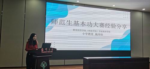 分享会上,臧琴老师、徐建星老师、方晨瑶老师分别对师范生教学基本功的训练提出指导意见。申卫革老师在活动总结中提出,教学基本功是师范生的重要专业素养,只有不断实践、勤于反思才能提升。