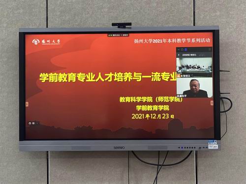 查永军院长首先向虞永平教授介绍了我院学前教育专业的办学情况,然后请学前教育专业主任张世义老师详细介绍了学前教育专业建设的情况。虞永平教授充分肯定了我院学前教育专业办学取得的成绩,尤其是在近几年,学前教育专业顺利通过了教育部师范专业二级认证,并成功获批江苏省一流本科专业建设点,体现出很好的发展势头。同时,虞永平教授建议,要以一流专业建设为依托,进一步优化课程教学改革,拓宽专业建设思路,注意提炼课程教学改革方面的成果,实现教学和科研的良性互补。