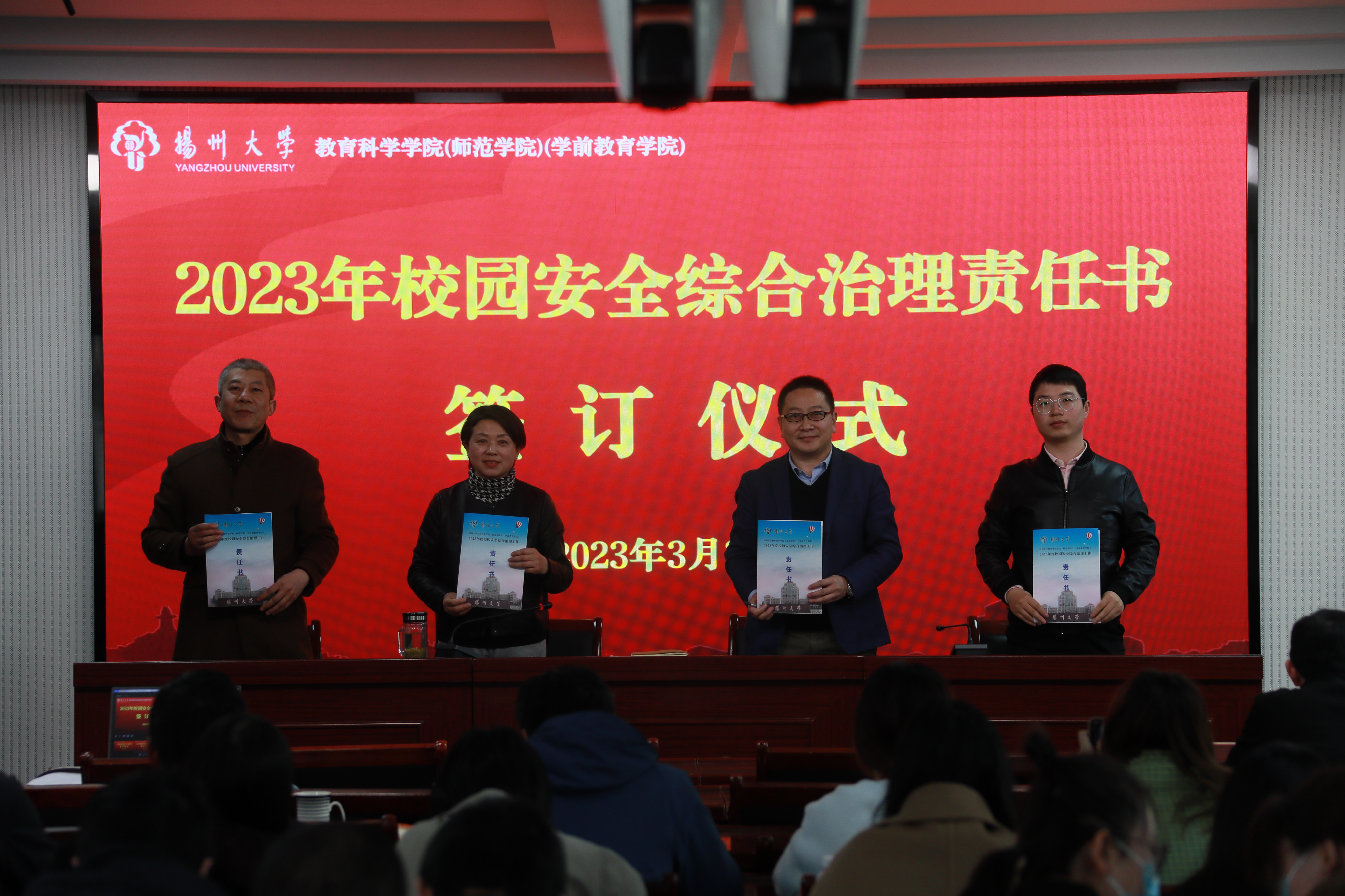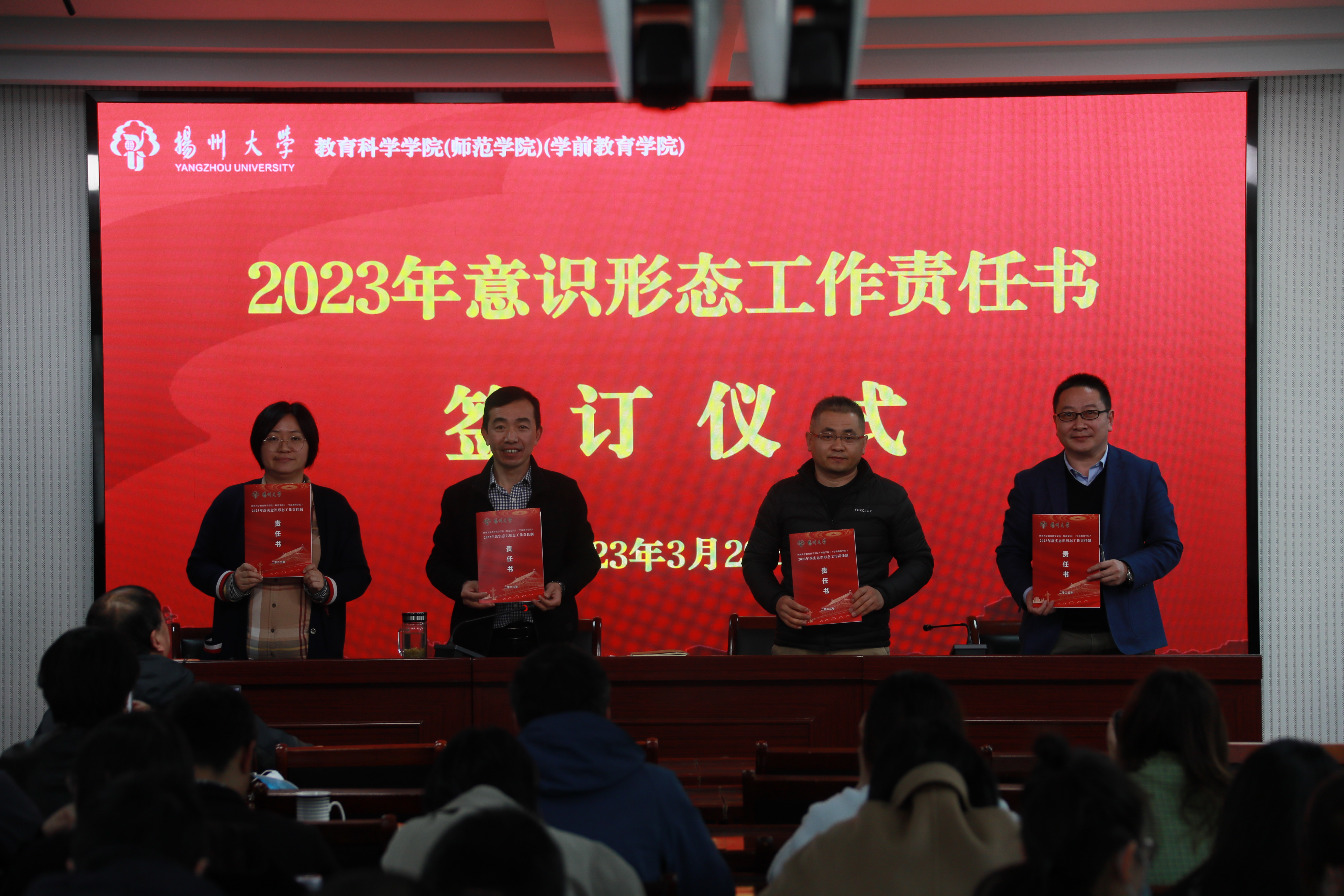 会上,与会人员观看了警示教育专题片。学院相关责任人分别与部分责任对象代表现场签订了党风廉政建设、意识形态、校园安全综合治理等三项工作目标管理责任书。