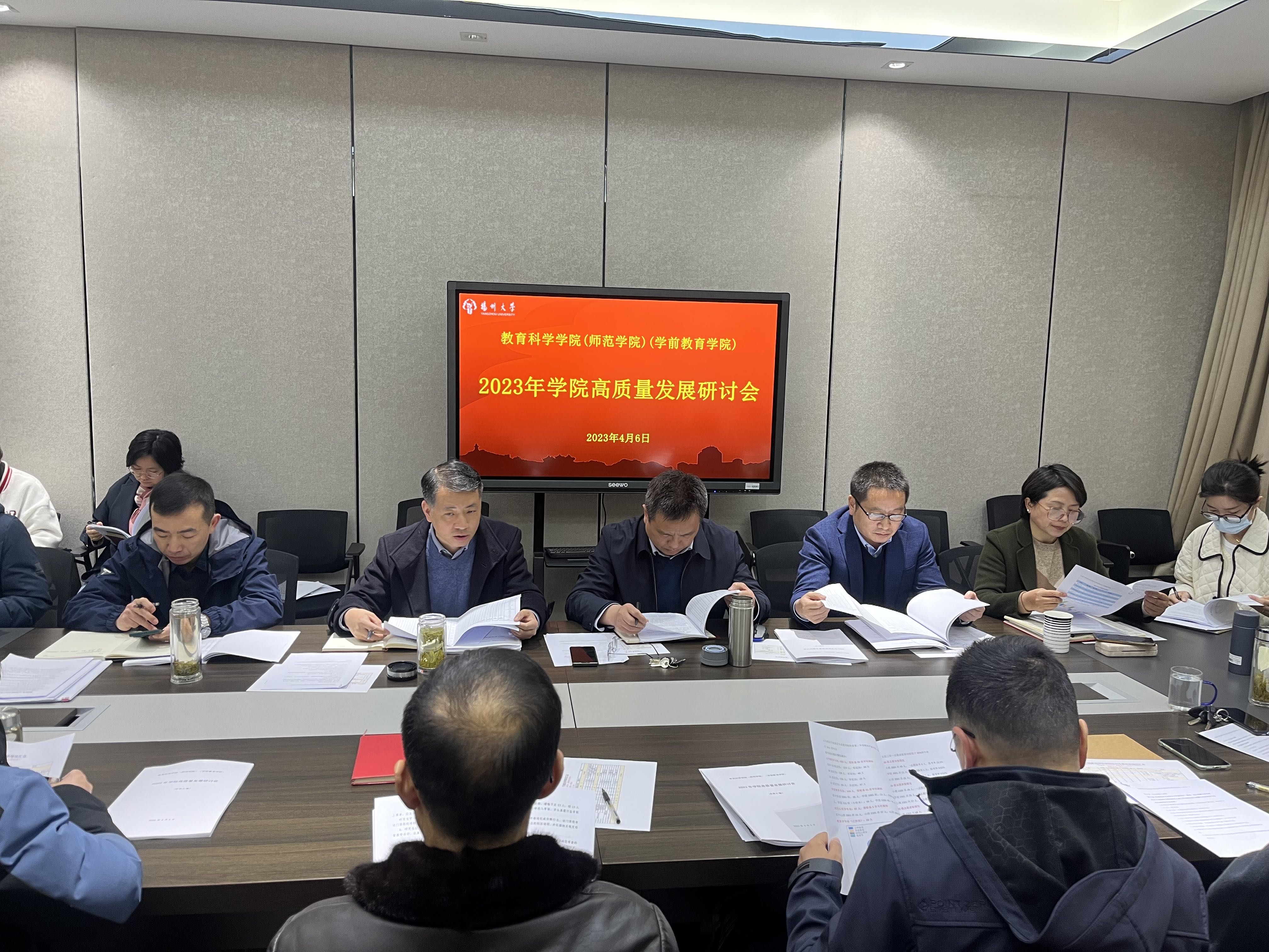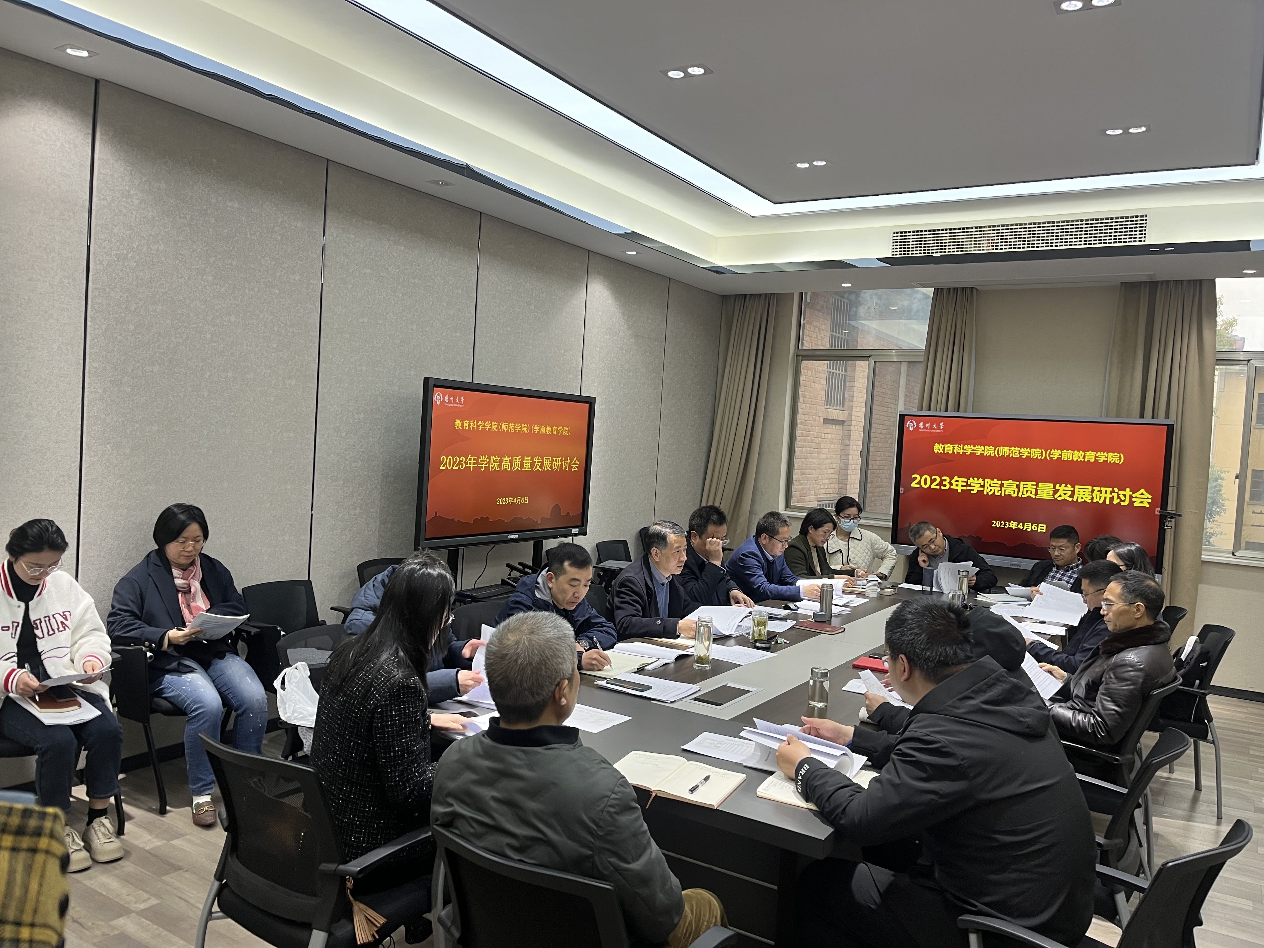 4月6日下午,教育科学学院召开2023年学院高质量发展研讨会,院党委书记杨咏主持会议,查永军院长等全体院领导、学科带头人、专业主任、支部书记、团委(学工办)负责人、办公室正副主任、 综合办公室秘书参会。