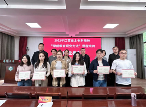 15日,学院举行了结业仪式。江苏省教育厅教师工作处许李军副处长、江苏省学前教育专业指导委员会尹坚勤秘书长、田燕副秘书长应邀出席结业仪式。在结业仪式上,教师代表、承办方代表依次发言,大家一致认为,本次培训活动内容丰富、形式多样、收益良多,并希望省内高校能够进一步加强合作,建立发展共同体,服务于“高素质善保教”的师资队伍建设目标,助力新时代学前教育师资培养工作。