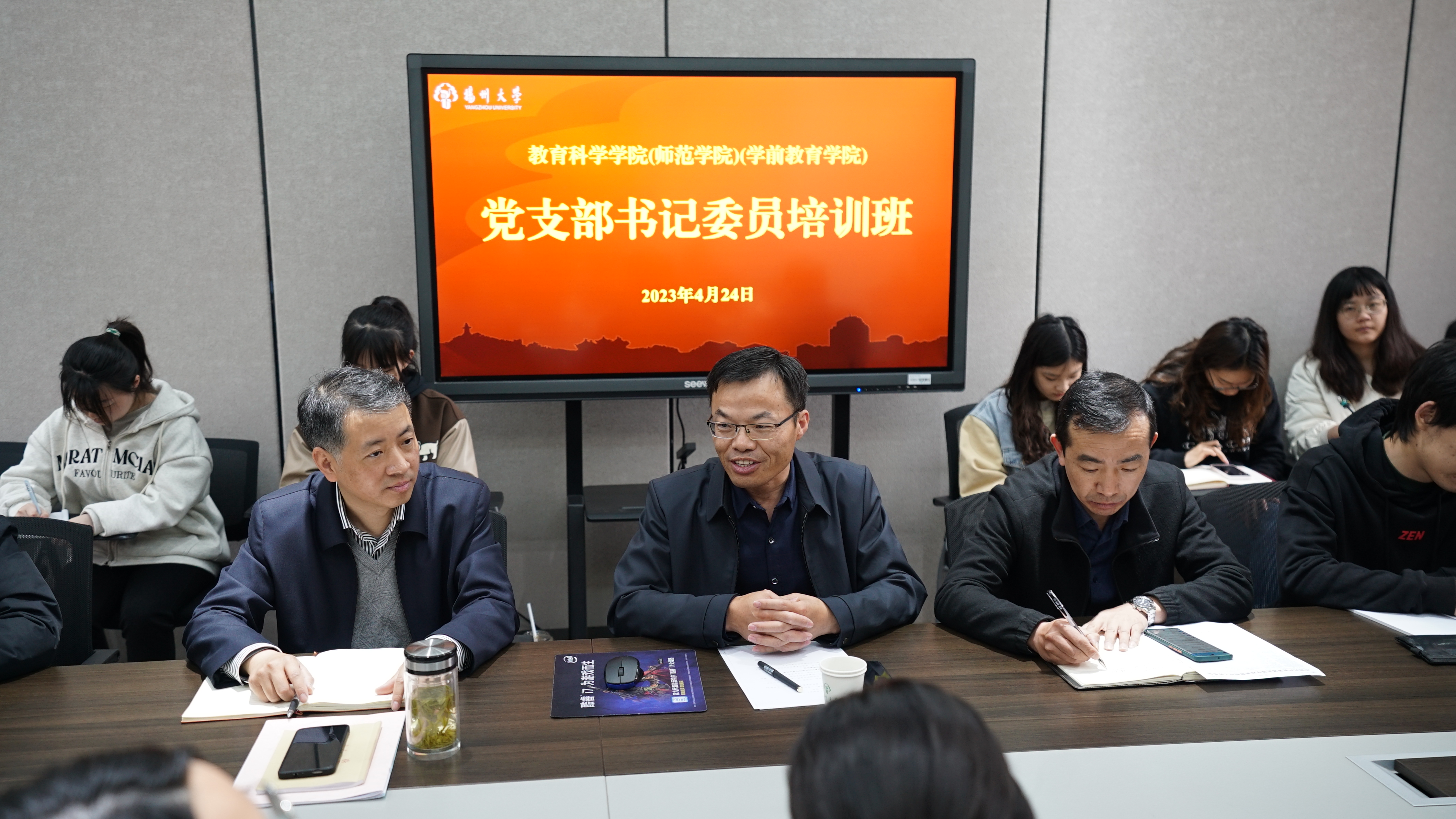 4月24日,学院举办党支部书记委员培训班。院党委杨咏书记主持活动,校党委组织部副部长、党校常务副校长陈立永为本次活动作“发展党员与主题党日”专题讲座。 院党委朱鑫铨副书记、各教工党支部书记、全体学生党支部书记和委员参加学习。