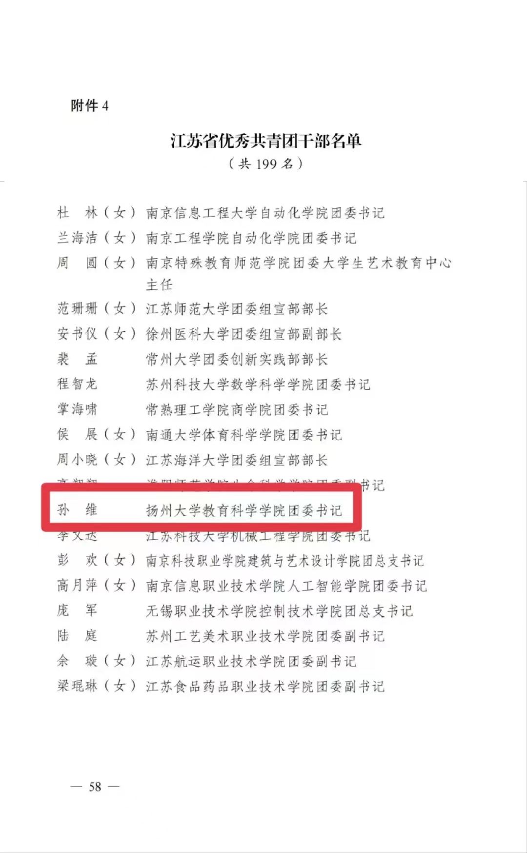 近日,共青团江苏省委发文表彰2022年度全省共青团工作先进单位及个人。热烈祝贺我院团委书记孙维老师被评为“江苏省优秀共青团干部”。岁月无声,山河为证,让我们一起追寻孙维书记作为榜样的事迹,照亮青春的底色!
