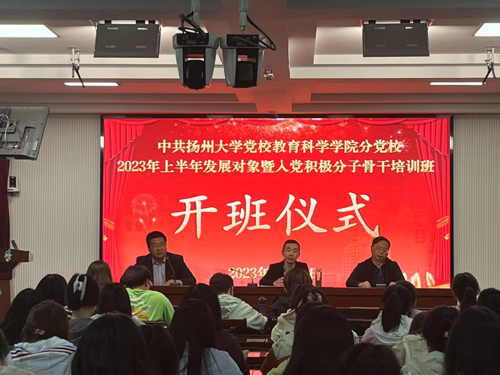 5月10日下午,教科院分党校2023年上半年发展对象暨入党积极分子骨干培训班在瘦西湖校区65号楼西附楼二楼报告厅举行开班仪式。院团委书记、本科生党支部书记孙维主持仪式,学院综合办主任邵成忠介绍了本期培训班的相关准备情况,学院党委副书记、分党校副校长朱鑫铨作了动员讲话。