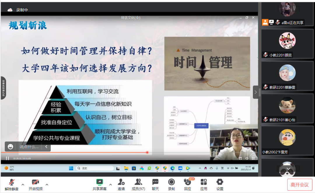 本次分享会中,吕玉书记结合自身实际经历,用浅显易懂的表达方式,引领广大师范生主动树立自己的未来发展目标,坚定自己的理想信念,以踔厉奋发的姿态,做好新“师”代的社会主义接班人,为社会主义建设添砖加瓦。