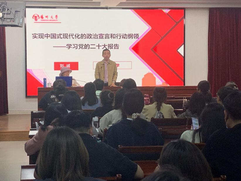 5月12日,我院邀请到扬州大学马克思主义学院刘诚教授,于65号教科楼报告厅开展《实现中国式现代化的政治宣言和行动纲领》主题培训。此次培训由我院党委副书记朱鑫铨老师主持,我院发展对象和入党积极分子骨干参与培训学习。
