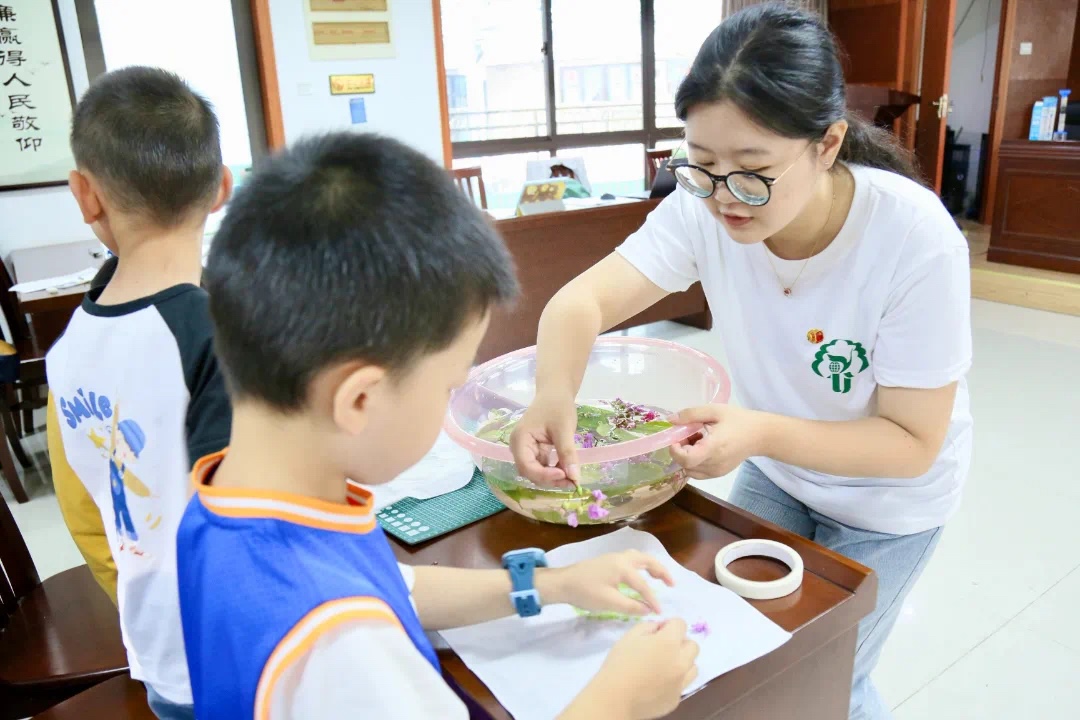 为提高幼儿节能环保意识,倡导绿色生活方式,在“节能降碳,你我同行”全国节能宣传周到来之际,我院小教2105班“碳寻”节能环保暑期社会实践团队走进扬州市邗江区大刘社区,开展“绿色生活 我在行动”主题教育实践活动,通过环保小课堂、节能科学小实验、植物拓染等形式,在为孩子们普及知识的同时,宣传绿色节能思想,促使孩子们自觉成为环境资源保护的实践者、倡导者和宣传者。