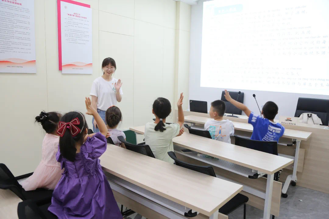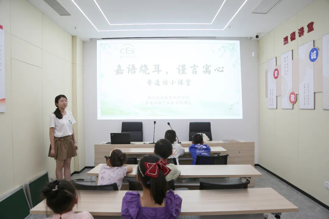 为了推广普通话教育,加强小朋友们对普通话的认识,提升综合素养,2023年7月7日,教育科学学院(师范学院)(学前教育学院)“嘉语绕耳,谨言寓心”普通话推广服务团队走进殷巷社区,开展“语出心声,‘普’写华章”普通话推广系列活动。志愿者以生动有趣的讲解引领小朋友们感受普通话的魅力。
