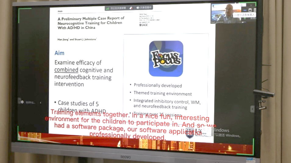 在这场报告中,来自澳大利亚卧龙岗大学的Stuart Johnstone教授深入研究了儿童注意力缺陷/多动障碍(AD/HD),并探讨了神经认知训练和评估的创新方法。他分享了关于如何通过游戏化的认知训练结合神经科学可移动监测设备改善儿童AD/HD症状的最新研究成果。与会者们从中获得了对ADHD更全面深刻的了解,为今后更好地理解和应对这一儿童常见心理健康问题提供了新的思路。