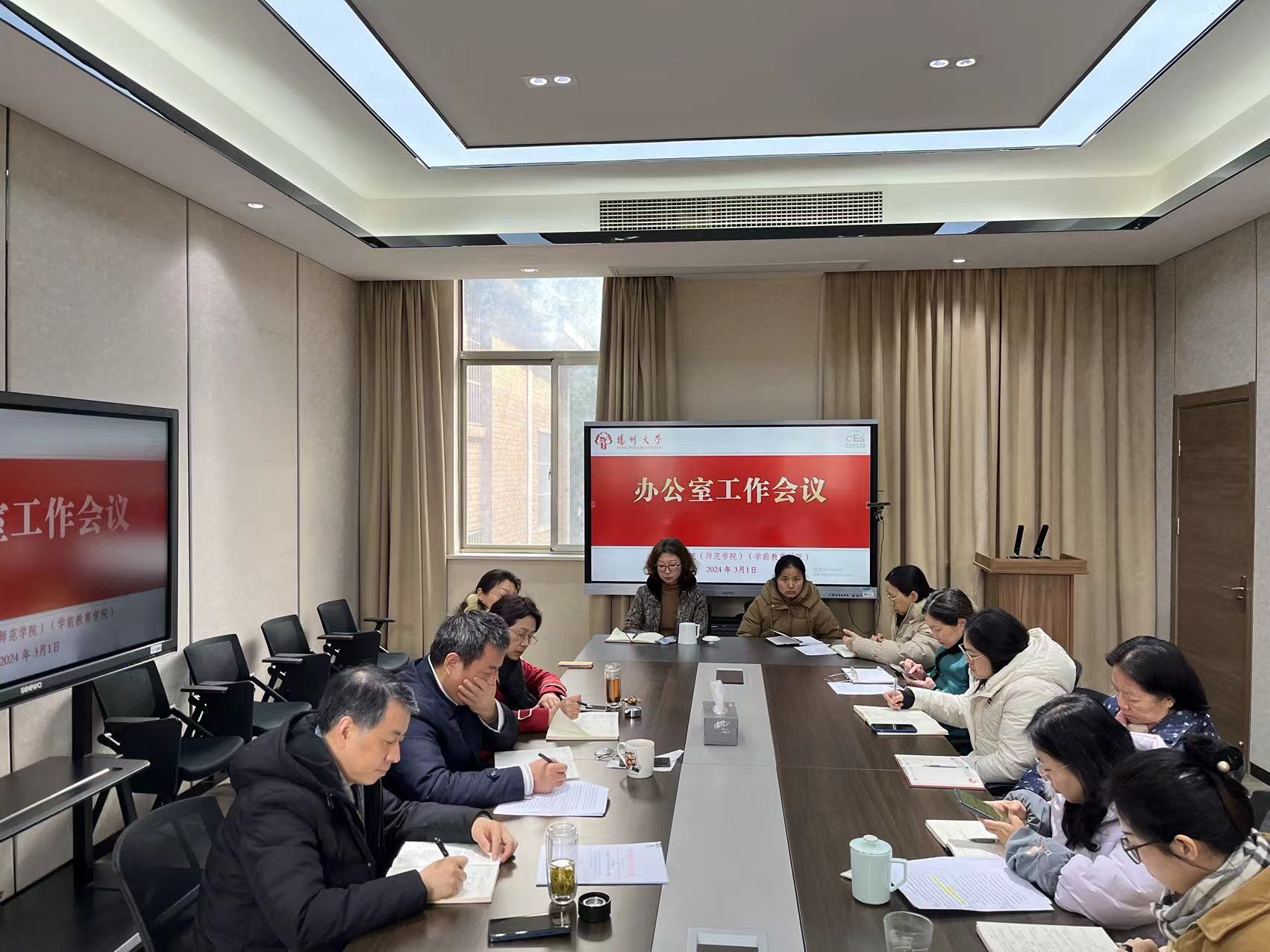3月1日上午,学院在206会议室召开2024年春季学期首次办公室工作会议。院党委书记杨咏、院长查永军出席会议并讲话,副院长曹玉兰主持会议,办公室全体人员参加会议。